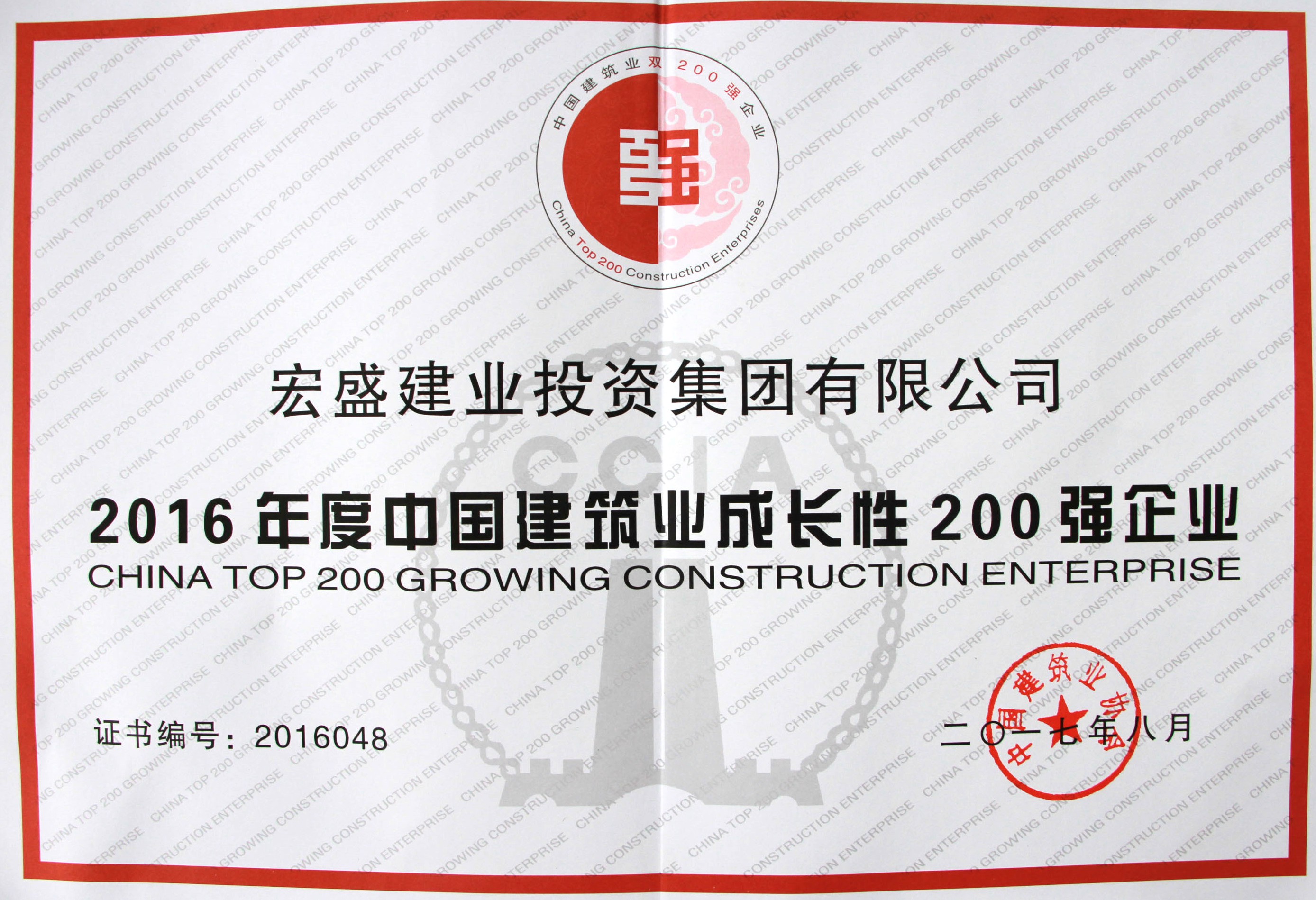 2016年度中國建筑業(yè)成長性200強企業(yè)