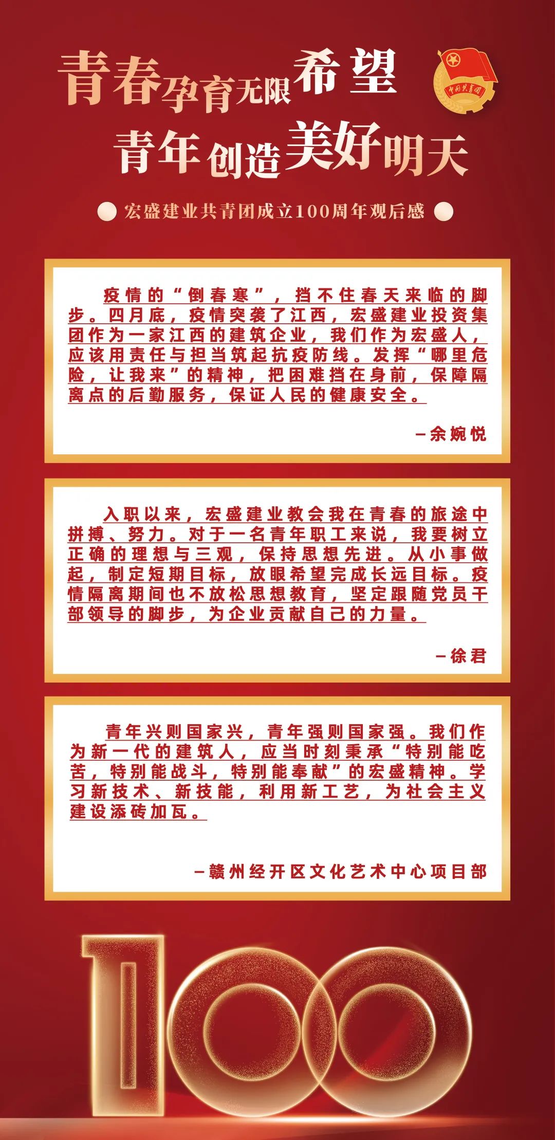 5月10日,中共中央總書(shū)記、國(guó)家主席、中央軍委主席習(xí)近平在慶祝中國(guó)共青團(tuán)成立100周年大會(huì)上發(fā)表重要講話。中共宏盛建業(yè)投資集團(tuán)有限公司黨支部組織全國(guó)各項(xiàng)目部及分子機(jī)構(gòu)的廣大青年集中收聽(tīng)收看大會(huì)實(shí)況直播,共同聆聽(tīng)習(xí)近平總書(shū)記的重要講話。廣大宏盛青年們齊聚大屏幕前,聚精會(huì)神地收看大會(huì)直播。