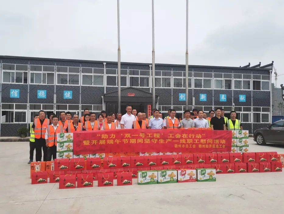 5月31日,贛州市總工會二級調(diào)研員賴定銘一行,來到贛州經(jīng)濟技術(shù)開發(fā)區(qū)文化藝術(shù)中心(A、C)地塊建設(shè)項目部,開展“工會情·‘粽’相隨”走訪慰問活動。為端午節(jié)期間不停工、時刻奮戰(zhàn)項目建設(shè)一線的廣大職工們送來了黨和政府以及上級工會組織的關(guān)懷和慰問。項目負(fù)責(zé)人葉興武及全體管理人員陪同。