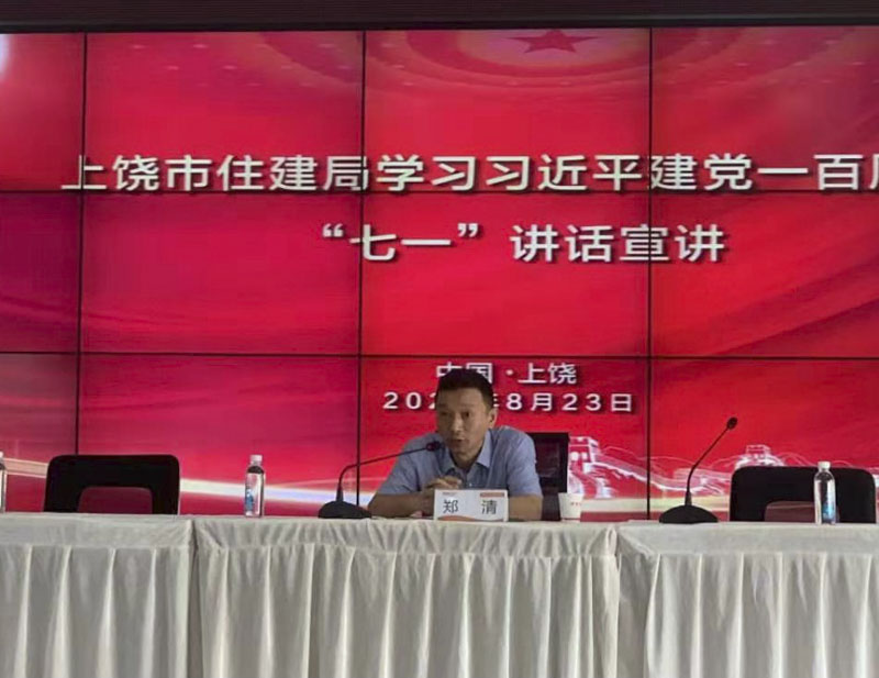 8月23日上午,秋高氣爽,上饒市住建局黨組書記、局長鄭清在住建局黨政辦主任余道福陪同下,深入上饒市建筑科技產(chǎn)業(yè)園(建業(yè)硅谷),宣講習(xí)近平總書記“七一”在慶祝中國共產(chǎn)黨成立一百周年大會(huì)上的重要講話精神。鄭清同志的宣講提綱挈領(lǐng)、簡明扼要、旁征博引、深入淺出,贏得了聽眾陣陣掌聲。大家表示,聽了鄭局長的宣講,對(duì)習(xí)近平總書記的“七一”重要講話精神有了更加全面深刻的理解,對(duì)指導(dǎo)企業(yè)今后發(fā)展和提升員工素質(zhì)做好本職工作具有重要意義。