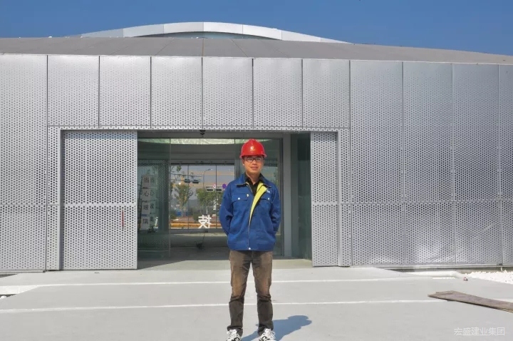 2017年上饒的夏天特別長,雖然日歷已翻到11月3日,但最高氣溫仍然達(dá)到27度!駐足于站前大道與鳳凰大道交匯處,映入眼簾是一座碩大的銀光閃閃的圓形建筑---建筑科技文化館。體驗館內(nèi),一個曬得黑不溜秋的青年正在指揮幾位師傅做最后的收尾。他就是負(fù)責(zé)建筑科技文化館施工的宏盛建業(yè)一級建造師—劉歡。