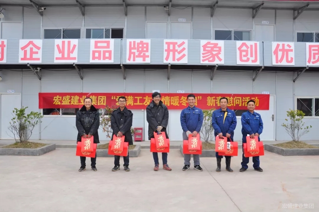 “工友們辛苦了,我代表集團(tuán)周金虎董事長(zhǎng)、代表工會(huì)來(lái)看望慰問(wèn)大家,給大家拜年了!”2月9日上午,受集團(tuán)周金虎董事長(zhǎng)委托,集團(tuán)黨支部書(shū)記、工會(huì)主席葉文玉帶領(lǐng)有關(guān)人員來(lái)到萬(wàn)年縣六O小學(xué)總部、橫峰縣便民服務(wù)大樓項(xiàng)目工程工地,開(kāi)展“愛(ài)滿(mǎn)工友,情暖冬陽(yáng)”新春慰問(wèn)活動(dòng),向奮戰(zhàn)在施工一線(xiàn)的項(xiàng)目部全體管理人員,送上集團(tuán)領(lǐng)導(dǎo)和總部機(jī)關(guān)親切關(guān)懷和新春祝福!