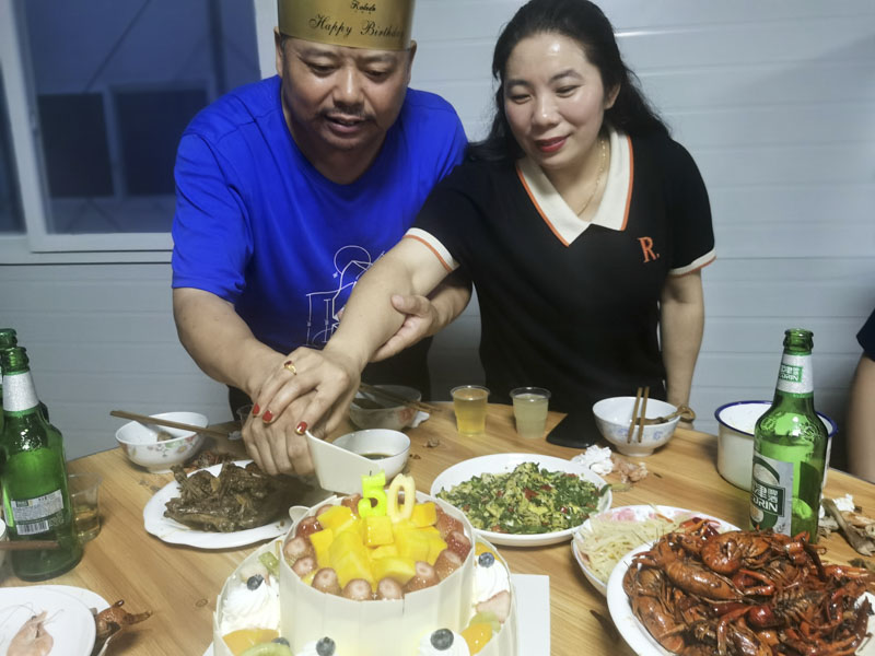 今日的壽星是項(xiàng)目部負(fù)責(zé)人唐錦江,71年的他08年便進(jìn)入了公司,資深而年長(zhǎng),早已是導(dǎo)師級(jí)的“老人”,因此大家都親切的喚他為“老唐”。作為長(zhǎng)期駐扎在項(xiàng)目部的“家長(zhǎng)”,辛勞工作之余,與家人更是分隔異地,倍加思念。
