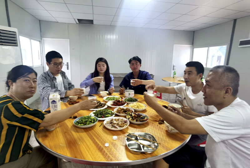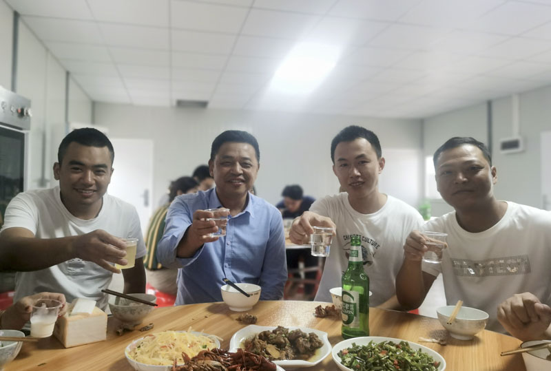 工作忙碌了整日,莫不疲勞、饑餓。下午6點(diǎn)整,忙碌了大半天的項(xiàng)目部餐廳一切準(zhǔn)備就緒,傳來了開飯的消息,于是乎大家紛紛離開辦公區(qū)域匯聚至餐廳入席就餐。一桌豐盛的家常菜配以薄酒,組成了項(xiàng)目部生日會(huì)活動(dòng)溫暖的開端。