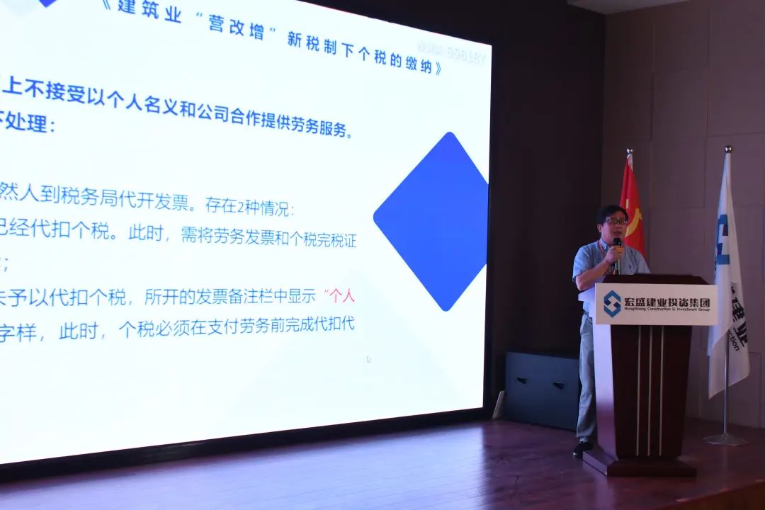 2022年8月8日,宏盛學(xué)堂財(cái)稅專項(xiàng)培訓(xùn)第一期《建筑業(yè)“營改增”新稅制下個(gè)稅的繳納》于總部大樓八樓召開。