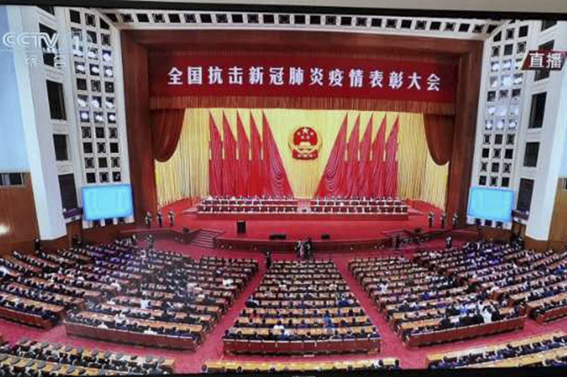 中共中央總書(shū)記、國(guó)家主席、中央軍委主席習(xí)近平向在抗擊新冠肺炎疫情斗爭(zhēng)中作出杰出貢獻(xiàn)的功勛模范人物頒授勛章獎(jiǎng)?wù)虏l(fā)表重要講話?!肮埠蛧?guó)勛章”獲得者鐘南山、“人民英雄”國(guó)家榮譽(yù)稱號(hào)獲得者張伯禮、張定宇、陳薇四人在列。大會(huì)還對(duì)全國(guó)抗擊新冠肺炎疫情先進(jìn)個(gè)人、先進(jìn)集體、全國(guó)優(yōu)秀共產(chǎn)黨員、全國(guó)先進(jìn)基層黨組織進(jìn)行表彰。