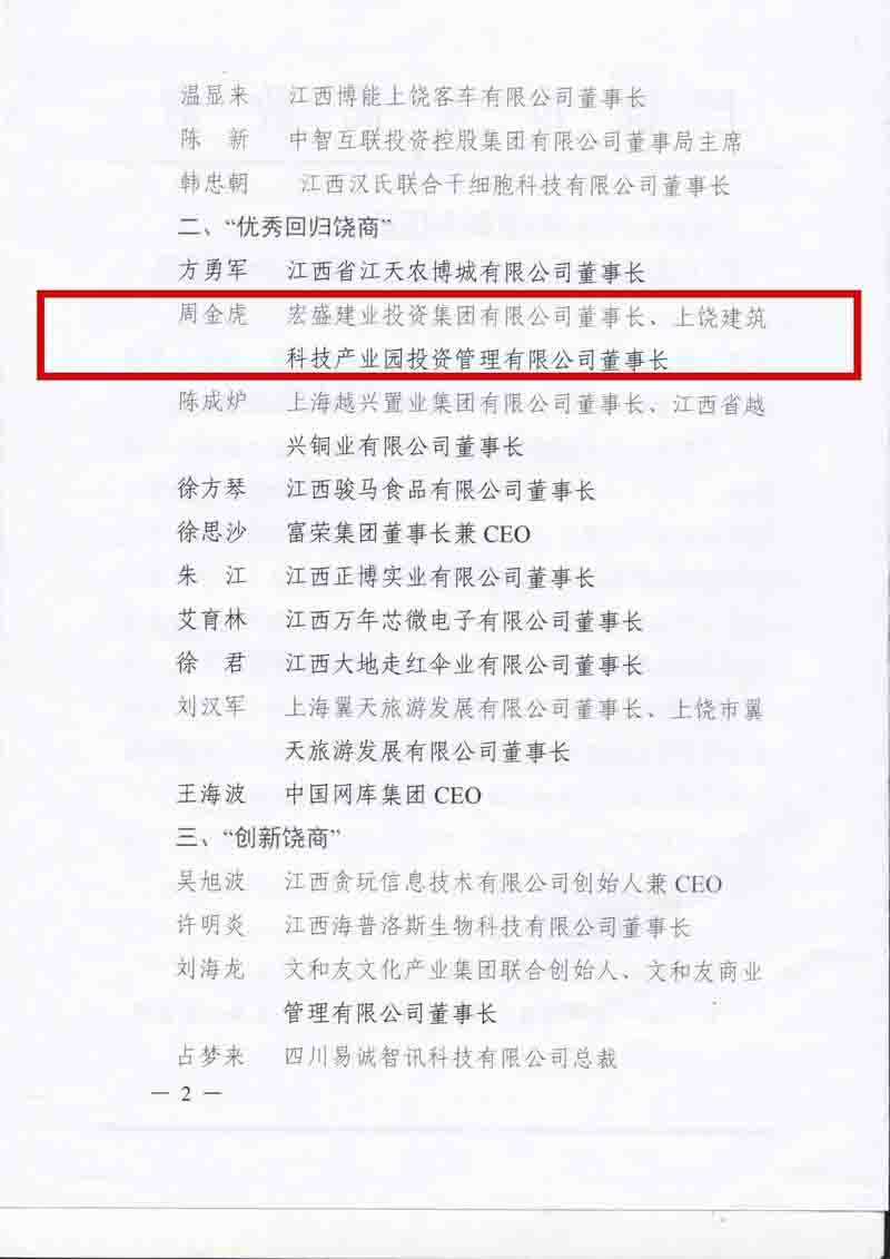 集團(tuán)董事長周金虎榮膺“優(yōu)秀回歸饒商”榮譽(yù)稱號