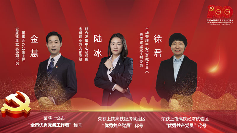 宏盛建業(yè)黨支部副書記、董事會辦公室主任金慧榮獲“上饒市優(yōu)秀黨務工作者”稱號,宏盛建業(yè)黨支部委員、綜合發(fā)展中心總經(jīng)理陸冰和宏盛建業(yè)黨支部委員、市場管理中心資質部負責人徐君榮獲高鐵經(jīng)濟試驗區(qū)“優(yōu)秀共產(chǎn)黨員”稱號。